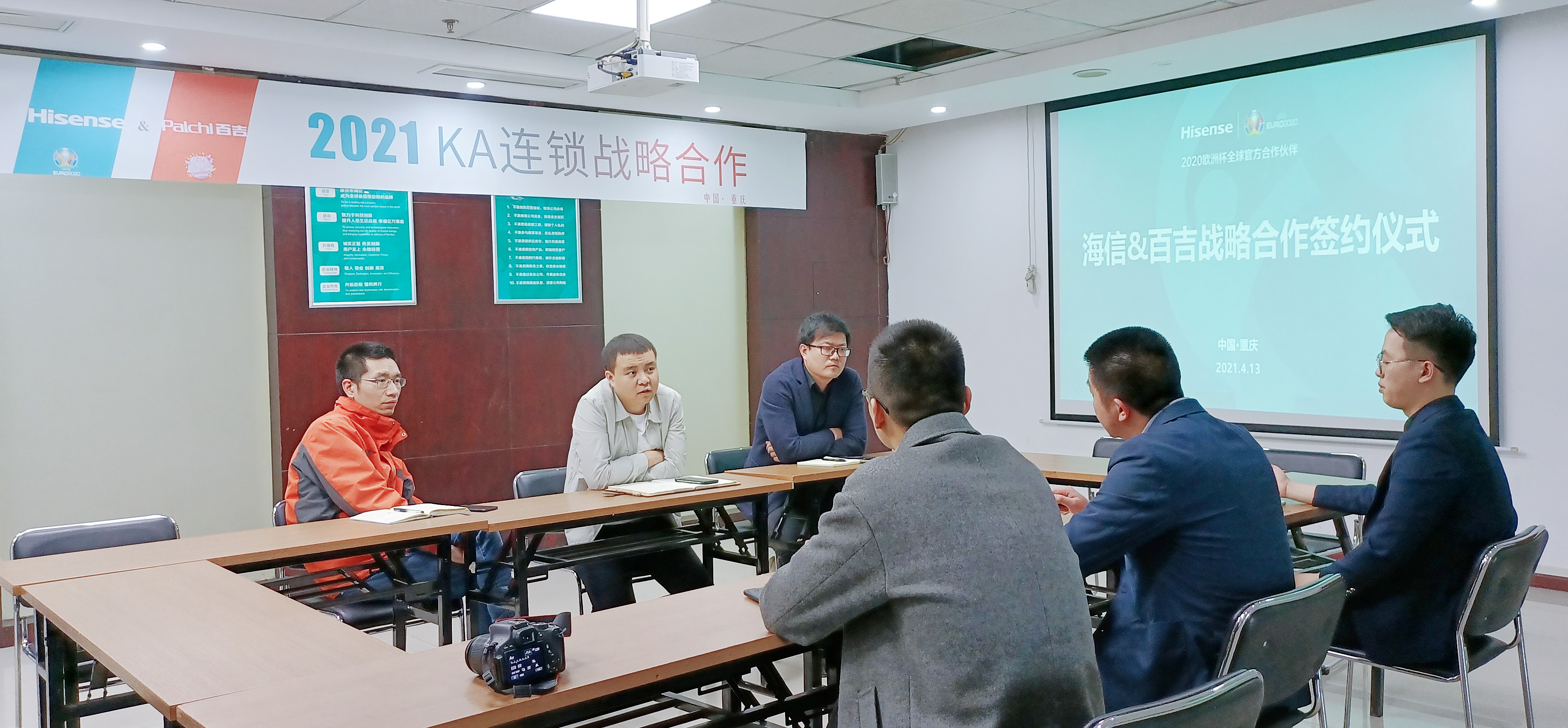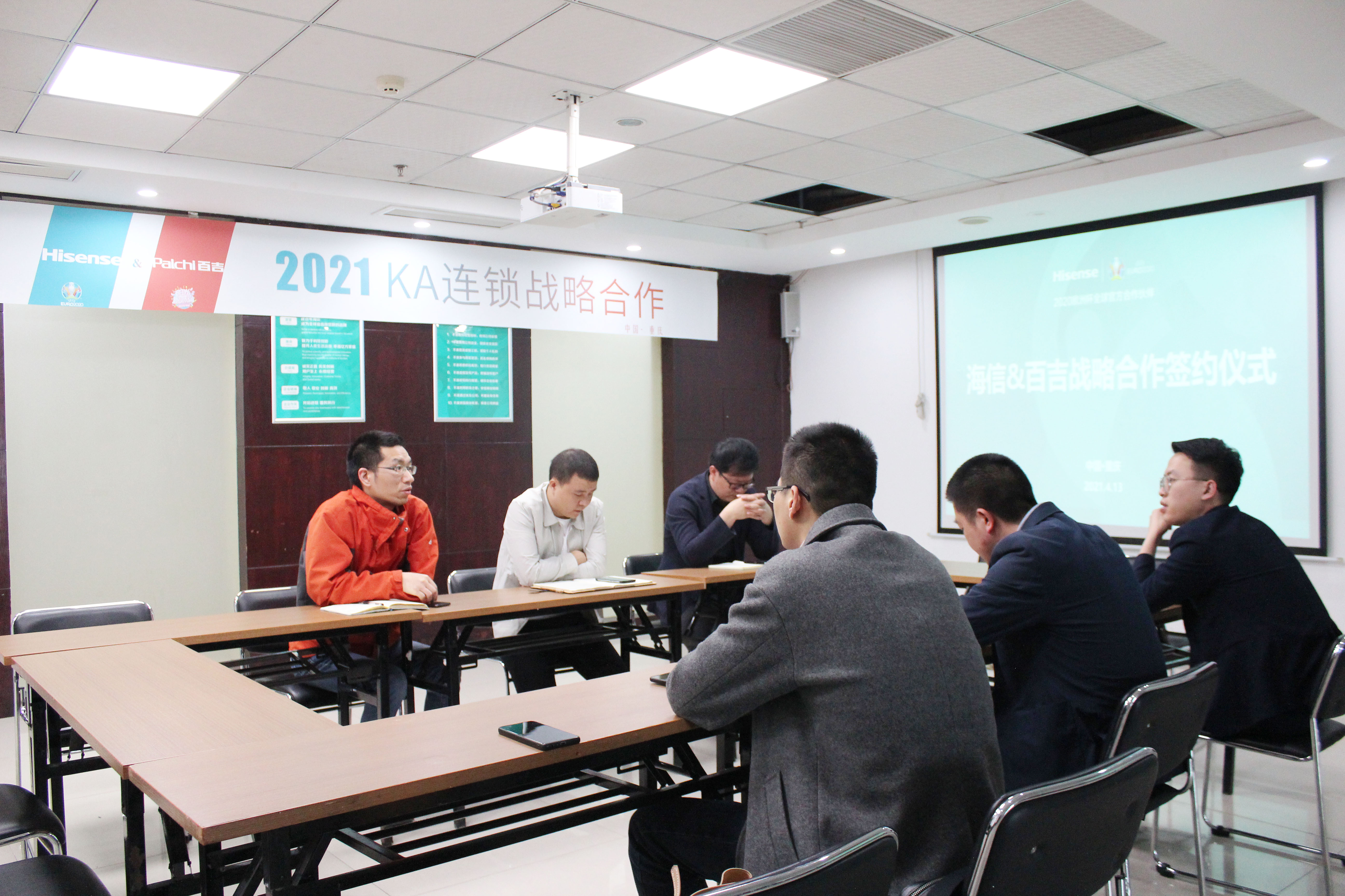 2021年4月13日,在海信集團重慶營銷中心,百吉廚電與海信進行了2021年KA連鎖合作的交流,雙方一致決定建立全面戰略合作伙伴關系。